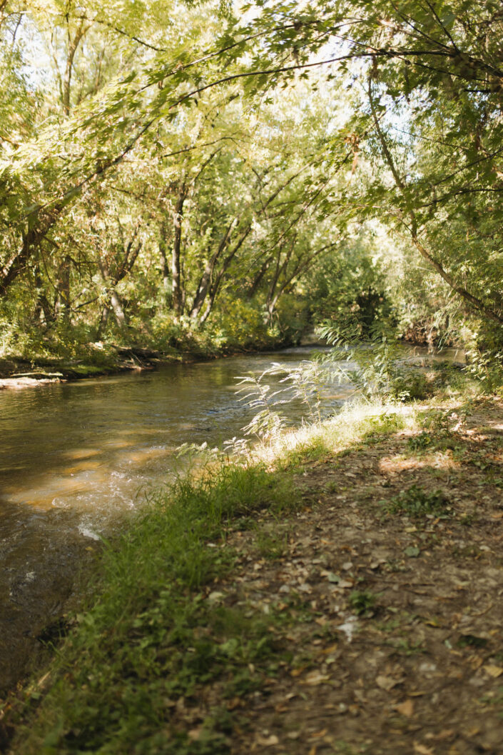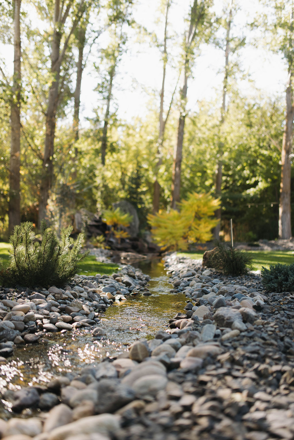 2 White pavilion tents with concrete floor | Crystal chandeliers | Cafe-style string lights | Pond with boulder fountains | Orchard | Parking | White-washed storage barn | Swing | Stone walkway | Stone Bench | Sitting garden with bowl | Hot tub | Private cypress-lined drive | River frontage