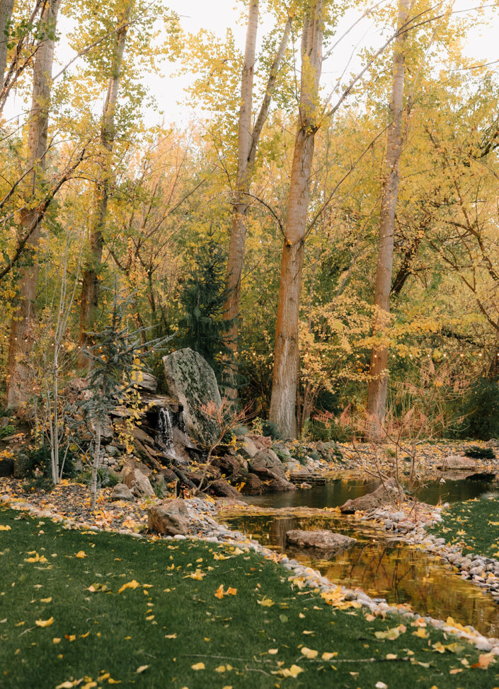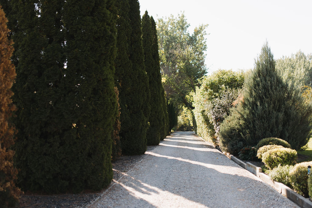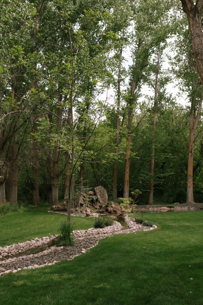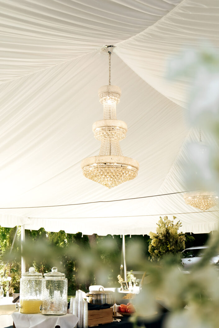 The 2,000 square foot Spanish revival cottage, built in 1930, is nestled under towering elm, maple, and cypress that are nearly 100 years old. Acres of verdant lawns and beds overgrown with iris, rose, and yucca, make a perfect setting for your outdoor/indoor event. Situated in the back garden is a white canopy draped in white silks, bejeweled with crystal chandeliers, and strung with golden lights. A whitewashed barn provides a rustic backdrop for photos.